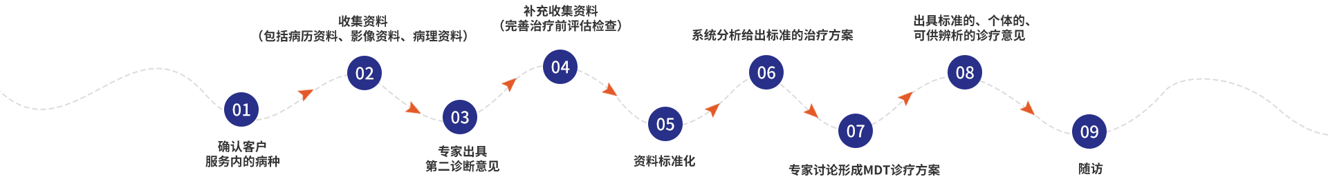 公司依托国内顶级肿瘤医院国家癌症中心、中国医学科学院肿瘤医院的专家和公司专业的医疗团队,以及自主研发的“肿瘤诊疗路径管理及诊疗决策信息化系统”为核心,为客户提供规范化、个体化、可供辨析的第二诊断意见和第二诊疗意见。